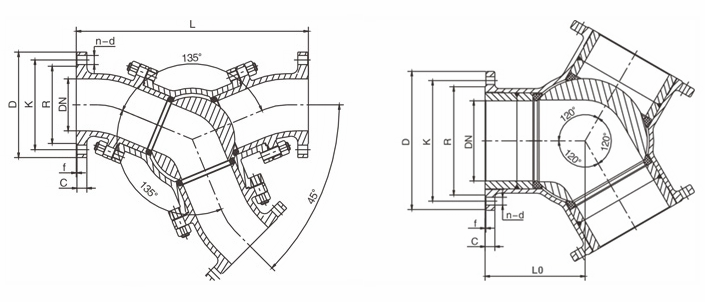 氣動帶手動Y型三通球閥流道采用120°或135°角設(shè)計,流體通道和管道的孔徑一致,且它任意徑向截面都為與管口內(nèi)徑一致的圓,因此其軸向為圓滑設(shè)計,減少了流體阻力,避免紊流、氣蝕現(xiàn)象的產(chǎn)生,被輸送的介質(zhì)不會在流道中被破壞,防止堵塞。該閥克服了T型和L型三通球閥連接通道的轉(zhuǎn)角都為90°直角,被輸送的介質(zhì)容易在直角轉(zhuǎn)角處被碰碎,損壞產(chǎn)品品質(zhì)并且易在轉(zhuǎn)角處堆積形成堵塞的問題。
