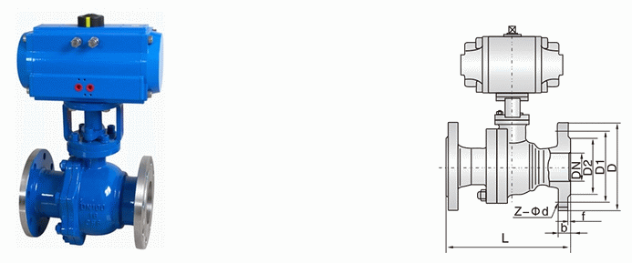 氣動(dòng)法蘭球閥外形結(jié)構(gòu)圖: