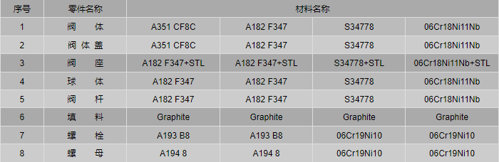 CF8C、F347不銹鋼球閥零件材料: