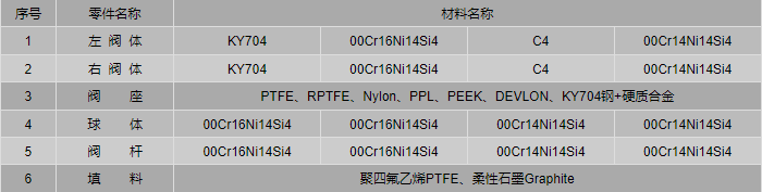 KY704不銹鋼球閥是一種閥體、左閥體、球體、閥桿等主要部件采用KY704或00Cr16Ni14Si4等材料鑄造或鍛造而成的浮動(dòng)球或固定球球閥,該閥所使用的材質(zhì)屬高硅、高鉻鎳奧氏體耐酸不銹鋼,鋼號(hào)00Cr16Ni14Si4,主要適宜在中低溫(≤60℃)濃硝酸(98%HNO3)介質(zhì)中使用,具有優(yōu)良的耐蝕性能(腐蝕速率≤0.1mm/年,在絕對耐蝕性能標(biāo)準(zhǔn)范圍內(nèi)),同時(shí)又能耐稀硝酸腐蝕,其兼有C2鋼(00Cr17Ni15Si4Nb)和C4鋼(00Cr14Ni14Si4)的某些優(yōu)點(diǎn)。