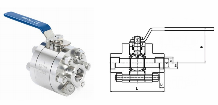 高壓螺紋球閥外形結(jié)構(gòu)圖: