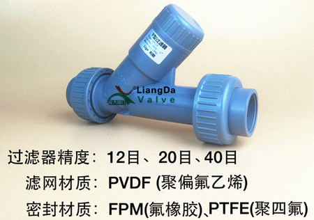 塑料Y型過濾器是輸送介質(zhì)的管道上不可缺缺少的一種裝置,通常安裝在減壓閥、泄壓閥、定水位閥或其他設備進口端。塑料Y型過濾器用來消除介質(zhì)種的雜質(zhì),以保護閥門、水泵以及設備的正常使用。塑料Y型過濾器主要適用余化工、石油、冶金、輕工、醫(yī)藥、食品等行業(yè)的液體及氣體物料的過濾。