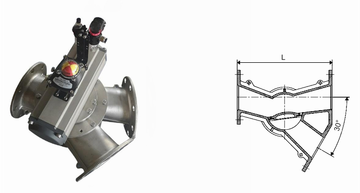 三通換向閥主要以壓縮空氣作為動力源,通過雙作用氣動執(zhí)行器帶動帶柄的柱塞在設計成Y形三通道(即中間一個進口和左右兩端兩個出口)閥體內(nèi)作120°或135°角行程往復運動,實現(xiàn)對送料系統(tǒng)管道內(nèi)介質(zhì)的自動換向,即當氣缸旋轉(zhuǎn)120°或135°帶動閥芯關閉左端的出料口時,右端的出料口開通,當氣缸回轉(zhuǎn)120°或135°帶動閥芯關閉右端的出料口時,左端的出料口開通,從而使閥門的流向切換達到了自動化控制。該閥氣動執(zhí)行器通常與電磁閥和限位開關及空氣過濾減壓閥等附件配合使用,其電磁閥線圈電壓等級一般采用24V(DC)或220V(AC)等,并有防爆與非防爆之分。