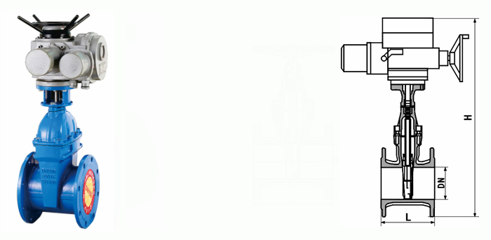 電動軟密封閘閥外形結(jié)構(gòu)圖: