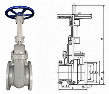 大口徑美標(biāo)閘閥外形結(jié)構(gòu)圖: